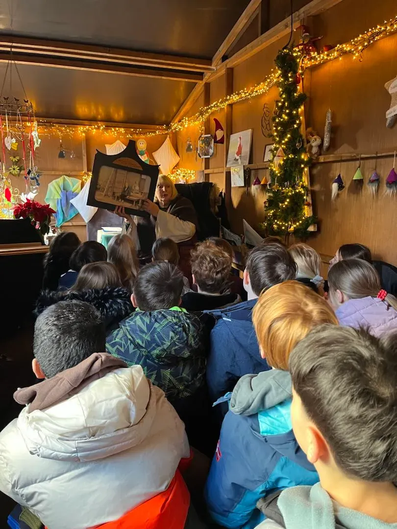 Die 4a hat heute bei Marie, der Geschichtenerzählerin des Celler Weihnachtsmarktes, in ihrer Erzählstube gemütlich Platz genommen.