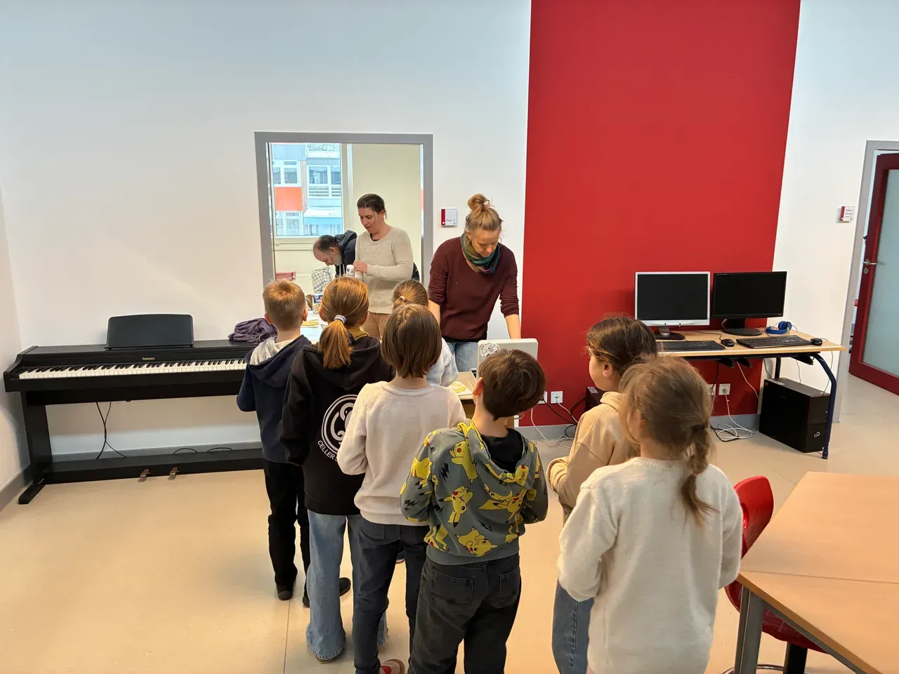 Die Eltern der 1. Klassen haben den Waffelteig gespendet und mit viel Engagement in unserer Schule frische Waffeln gebacken. Schon am Vormittag zog ein herrlicher Duft durch das Schulhaus und steigerte die Vorfreude auf die Pause.