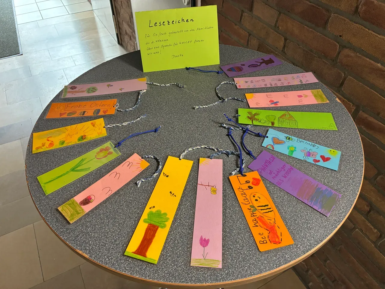 Am Aus­gang wur­den Spen­den ge­sam­melt, die zu glei­chen Tei­len UNICEF und un­se­rem Schul­ver­ein zu­gu­te­kom­men. Ins­ge­samt ka­men 2.020 € zu­sam­men – je­weils 1.010 € für UNICEF und den Schul­ver­ein. Da­mit un­ter­stützt UNICEF wich­ti­ge Pro­jek­te für Kin­der welt­weit, wäh­rend der Schul­ver­ein un­se­re ei­ge­ne Schu­le stärkt. Dan­ke an alle, die mit ih­rer Spen­de dazu bei­getra­gen ha­ben!