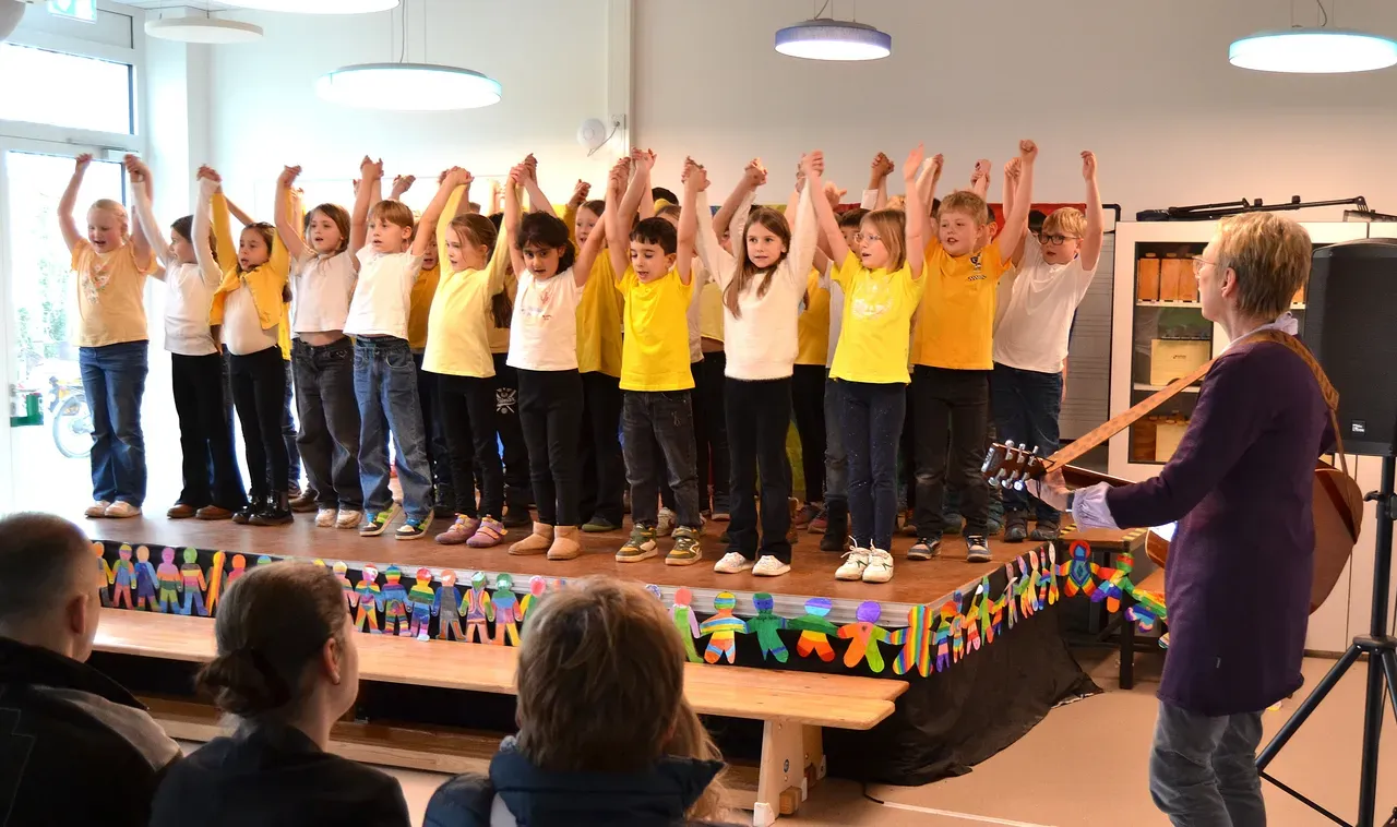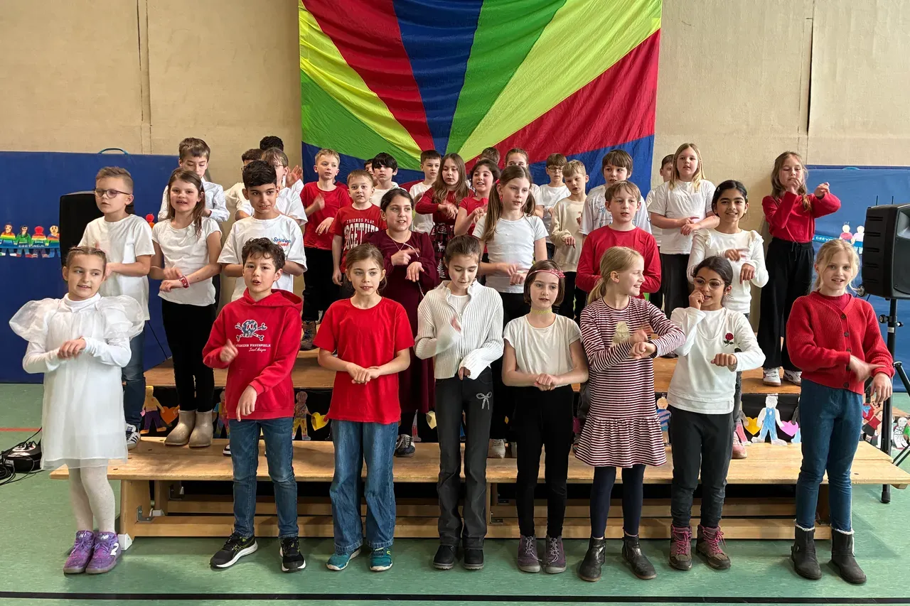 An bei­den Kon­zert­ta­gen lag spür­ba­re Auf­re­gung in der Luft. Ge­spannt war­te­ten die Kin­der in ih­ren Klas­sen auf ih­ren gro­ßen Mo­ment. Dann war es so­weit: Der ers­te Auf­tritt in der Turn­hal­le be­gann. Mit ei­ner Mi­schung aus Auf­re­gung und Vor­freu­de be­tra­ten die Kin­der die Büh­ne und be­geis­ter­ten das Pu­bli­kum mit ih­ren Dar­bie­tun­gen. Be­schwingt ging es an­schlie­ßend wei­ter zur Men­sa, wo der zwei­te Auf­tritt folg­te. Den Ab­schluss bil­de­te un­ser Schul­chor. Mit sei­nem Ab­schluss­lied sorg­te er bei vie­len Zu­hö­ren­den für ech­te Gän­se­haut­mo­men­te – ein be­we­gen­der Aus­klang ei­nes be­son­de­ren Kon­zerts.