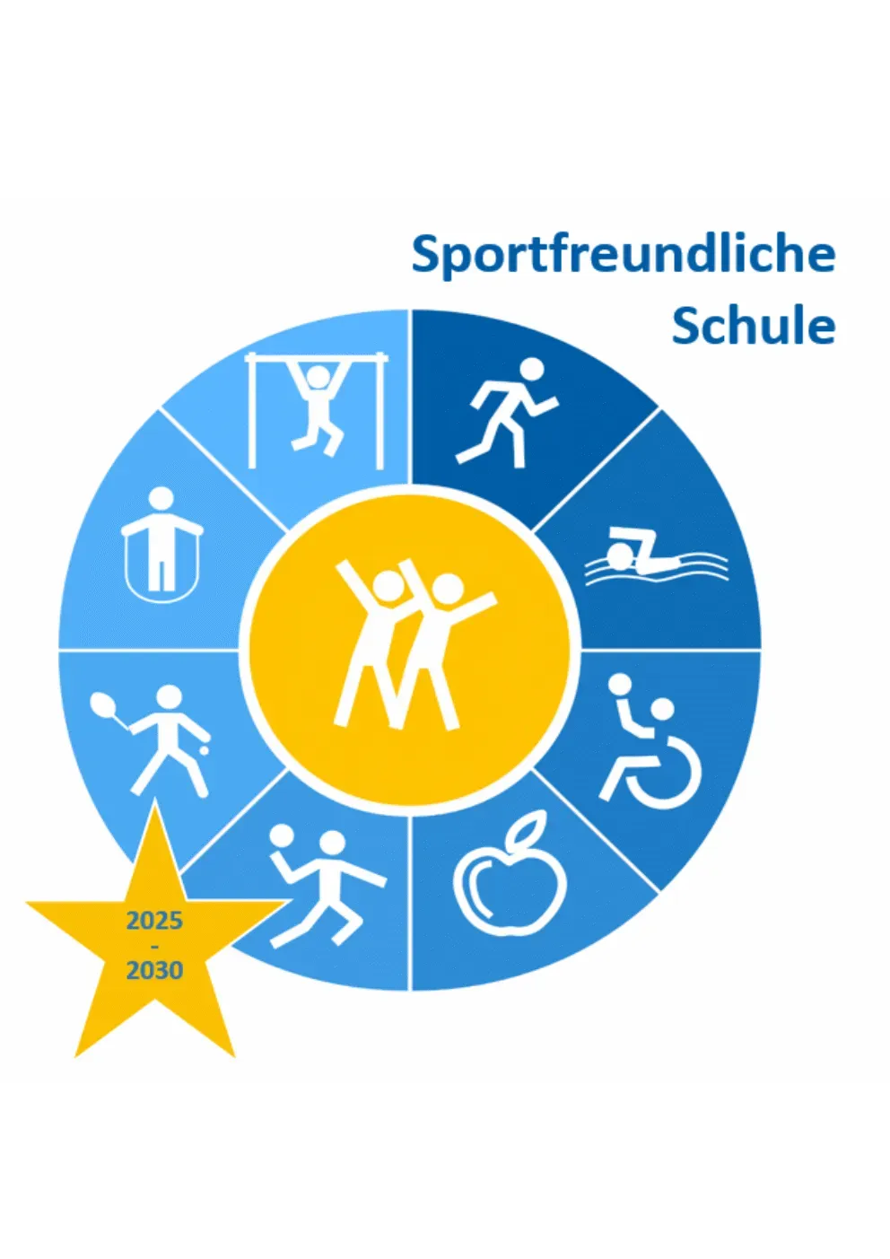 Unsere Schule wurde bereits in den Jahren 2009, 2012 und 2015 nach dem damaligen Verfahren als „Sportfreundliche Schule“ zertifiziert. Durch einen neuen Erlass im Jahr 2023 war eine weitere Verlängerung möglich, sodass die Schule nun zum vierten Mal die Auszeichnung erhalten hat und bis 2030 als Sportfreundliche Schule zertifiziert ist.